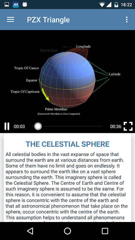 اصولوں پر نیویگیشن پر یہ اپنی نوعیت کا موب ایپ ہے۔ اس میں 34 سیکنڈ مووی اور وضاحت کے ذریعہ 15 گھنٹے کلاس روم کی وضاحت شامل ہے۔ اس کے دو ابواب ایک) کائنات ، ب) سیلویسیل کرہ جس میں متعدد سب ٹاپکس ایک فلم سے وابستہ ہیں۔