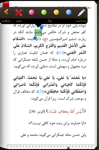 قابلیت هایلایت متن، و اضافه یادداشت به کتاب دانلود شده.
