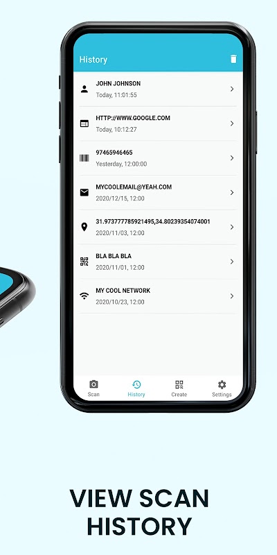 کیو آر اور بارکوڈ اسکینر تمام کیو آر کوڈز اور بارکوڈ اقسام کو اسکین اور پڑھ سکتا ہے جس میں ٹیکسٹ ، یو آر ایل ، مصنوعات ، رابطہ ، کیلنڈر ، ای میل ، مقام ، آئی ایس بی این ، وائی فائی اور بہت سارے فارمیٹس شامل ہیں۔