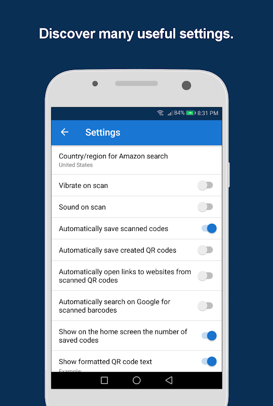 کیو آر کوڈ اور بار کوڈ اسکینر آپ کو اس کی اجازت دیتا ہے: