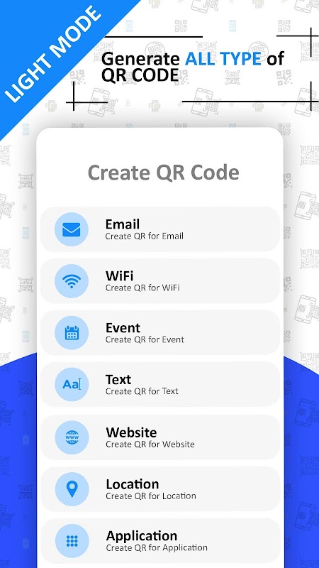 - Use QR code generator to create/ scan QR code to save contact, send message, call on phone number, add event in calendar, send frequent emails, visit the stored website URL, open android application, open location in map, connect WI-FI without typing.