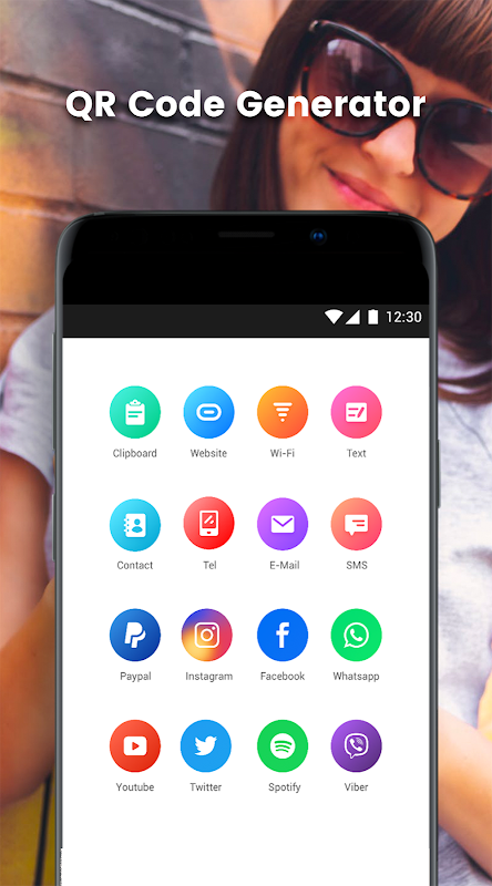Generate QR codes: Website, Facebook, Instagram, Paypal, Whatsapp, YouTube, Twitter, Spotify, Viber, Contact, Email, SMS, Text and more. Add logo and custom background on your QR code to help you create beautiful personal QR code. The QR code history will store on your phone, and you can edit it or share to your friends anytime.