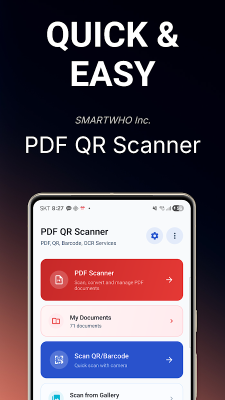 اینڈرائیڈ کے لیے تیز ترین آل ان ون کیو آر کوڈ اسکینر، بارکوڈ ریڈر اور پی ڈی ایف دستاویز اسکینر۔