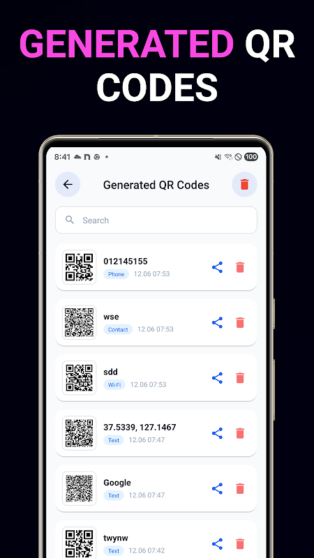 - کیو آر کوڈز بنائیں - متن، یو آر ایل، وائی فائی، رابطہ کارڈ، ای میل، فون، ایس ایم ایس، مقام