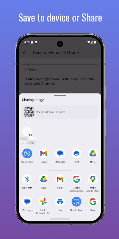 • ای میل، سوشل میڈیا، یا میسجنگ ایپس کے ذریعے آسانی سے QR کوڈز کا اشتراک کریں۔