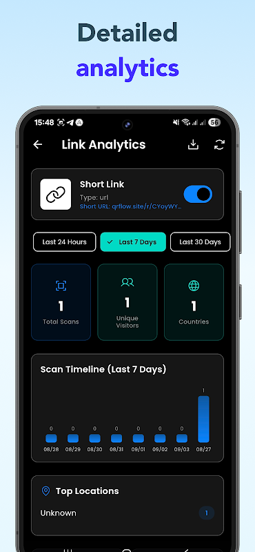 • اینالیٹکس کھولیں اور QR و شارٹ لنکس کی کارکردگی دیکھیں
