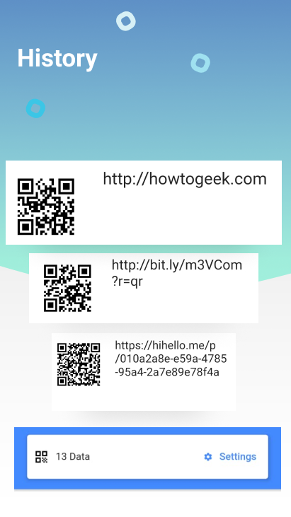 4 .. کیو آر لسٹ ہسٹری۔ اپنی تمام ماضی کی اسکین ہسٹری دکھائیں۔
