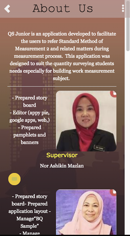 اس ایپلیکیشن کو مقدار کا سروے کرنے والے طلباء کی ضرورت کے مطابق ڈیزائن کیا گیا تھا خاص طور پر بلڈنگ ورکس میژرمنٹ کورس کے لیے۔