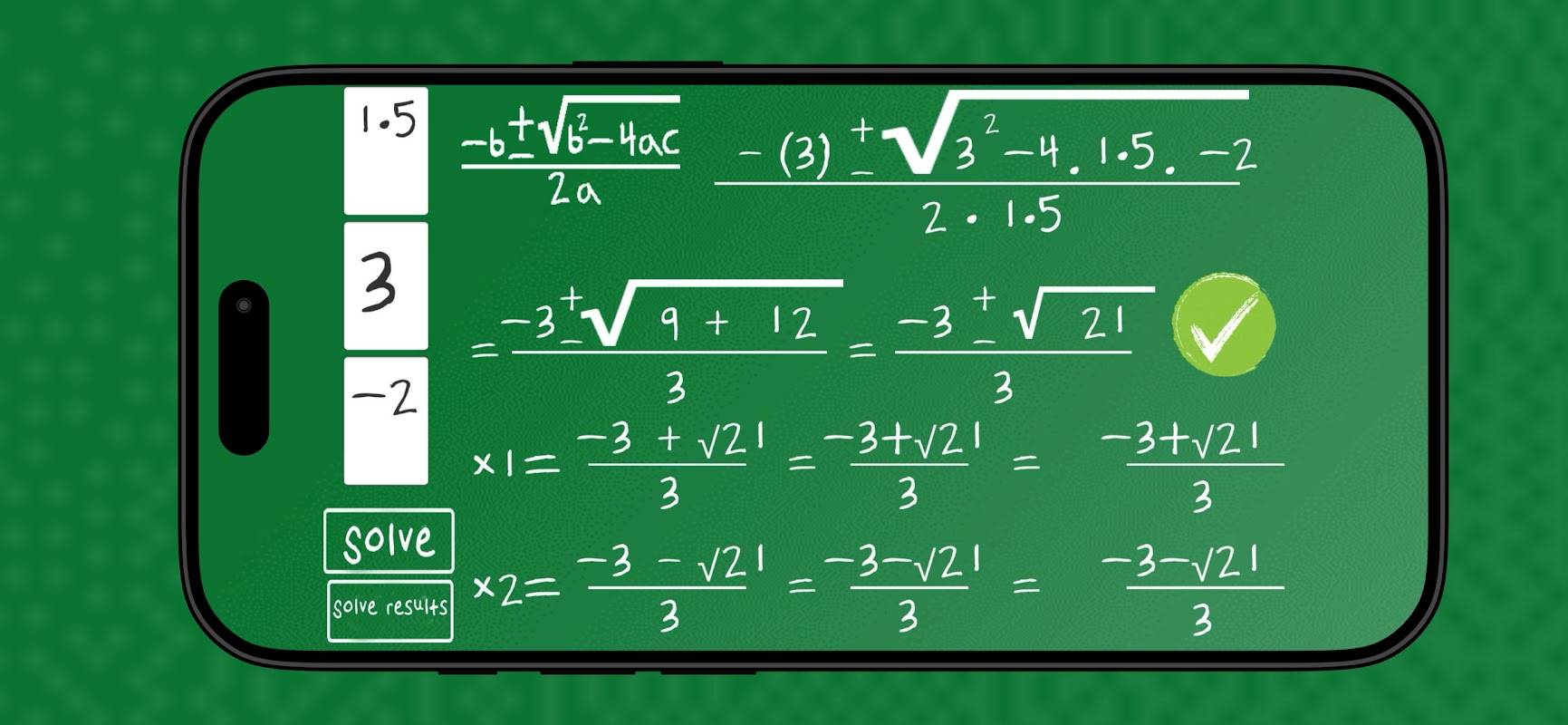 طلباء، معلمین، اور ہر اس شخص کے لیے بہترین ہے جس کو قابل اعتماد چوکور مساوات حل کرنے کی ضرورت ہو۔ ابھی ڈاؤن لوڈ کریں اور اپنی ریاضی کو آسان بنائیں!