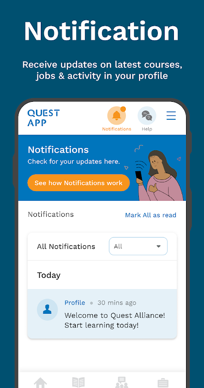 کویسٹ ایپ ایک ڈیجیٹل لرننگ پلیٹ فارم ہے جو آپ کو 21 ویں صدی کے روزگار کی مہارت کی تعمیر میں مدد کرتا ہے۔ یہ مہارت آپ کی ذاتی اور پیشہ ورانہ زندگی میں آپ کی مدد کرے گی اور آپ کے کیریئر کے سفر کی منصوبہ بندی کرے گی۔ اس پلیٹ فارم کا استعمال کرکے ، آپ سیکھنے والوں اور تربیت دینے والوں کی ایک بڑی جماعت سے طویل مدتی مدد بھی حاصل کرسکتے ہیں۔