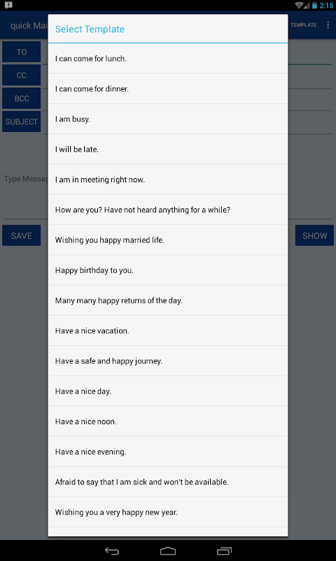 10. Templates are added to this mail app now. User can select pre-defined templates which will provide them subject and message text in this email app and enabling users to send short urgent text as fast as possible.