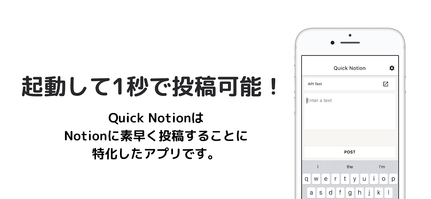 Quick NotionはNotionへの投稿を素早く行うために作られた、Notionの投稿専用アプリです。