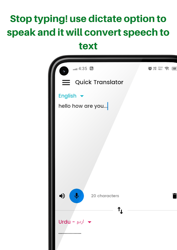 فوری مترجم آپ کو بول کر متن داخل کرنے دیتا ہے اور یہ آپ جو بول رہے ہیں اس کا پتہ لگانے کے لیے اسپیچ ریکگنیشن کا استعمال کرتا ہے۔ یہ آپ کو ترجمہ شدہ متن سننے اور راوی کے طور پر کام کرنے دیتا ہے۔ یہ آپ کو ترجمہ شدہ متن کو تیزی سے کاپی کرنے دیتا ہے اور اس کا ترجمہ کرنے کے لیے آپ کو کلپ بورڈ سے متن کو تیزی سے پیسٹ کرنے دیتا ہے۔