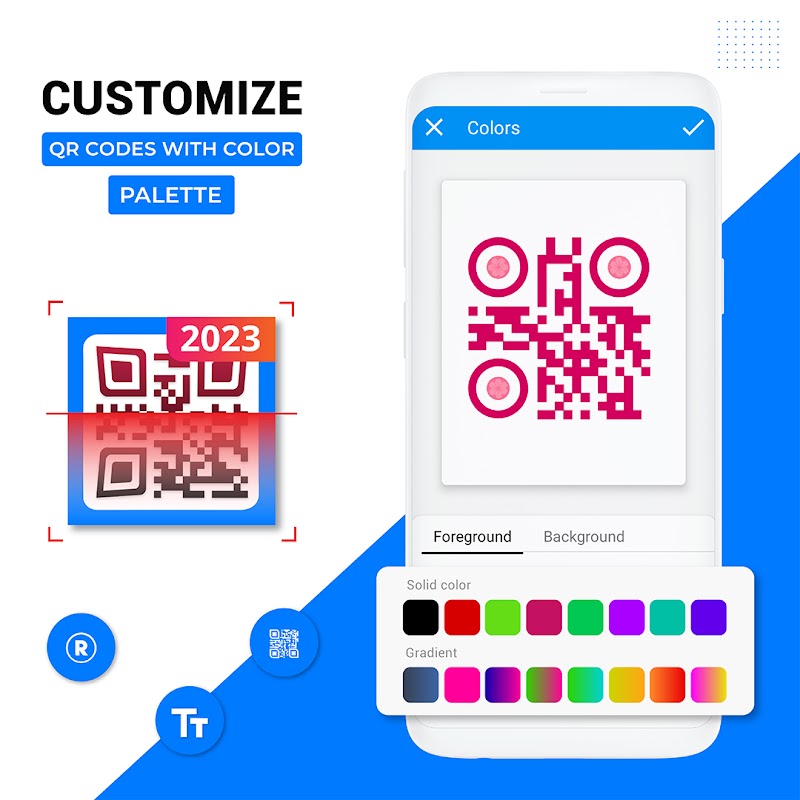 ایپ کا طاقتور QR کوڈ جنریٹر آپ کو اپنے QR کوڈز کو آپ کے اپنے رنگوں، لوگو اور سٹائل کے ساتھ اپنی مرضی کے مطابق کرنے کی لچک دیتا ہے۔ مختلف قسم کے خوبصورت ٹیمپلیٹس میں سے انتخاب کریں یا شروع سے ہی اپنے منفرد QR کوڈز بنائیں۔ لوگو شامل کرنے، رنگ تبدیل کرنے، اور یہاں تک کہ گریڈینٹ لگانے کی صلاحیت کے ساتھ، آپ کے QR کوڈز یقینی طور پر نمایاں ہوں گے اور مزید اسکینز کو اپنی طرف متوجہ کریں گے۔
