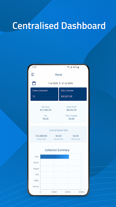 ایک صاف اور بدیہی ڈیش بورڈ کے ذریعے لائیو پرفارمنس میٹرکس جیسے کل سیلز، آرڈرز، ریونیو، اور سب سے زیادہ فروخت ہونے والی پروڈکٹ دیکھیں۔