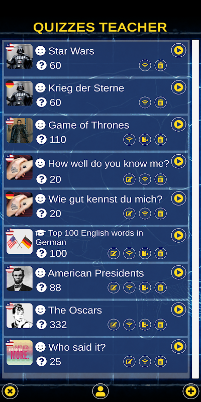 To get you started a list of several quizzes are included for you to try like a "How well do you know me?" partner test, an English-German vocabulary exam or a Star Wars quiz.