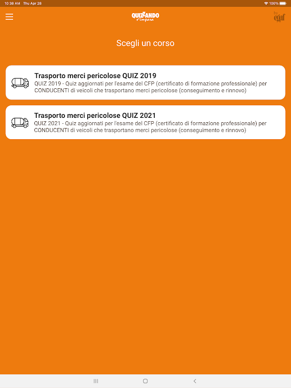 کوئز CFP ADR "ADR لائسنس" کوئز کے لیے ایپ ہے جسے EGAF (سڑک ٹریفک، موٹرائزیشن اور ٹرانسپورٹ سیکٹر میں رہنما) کے ذریعے تیار کیا اور مسلسل برقرار رکھا جاتا ہے۔