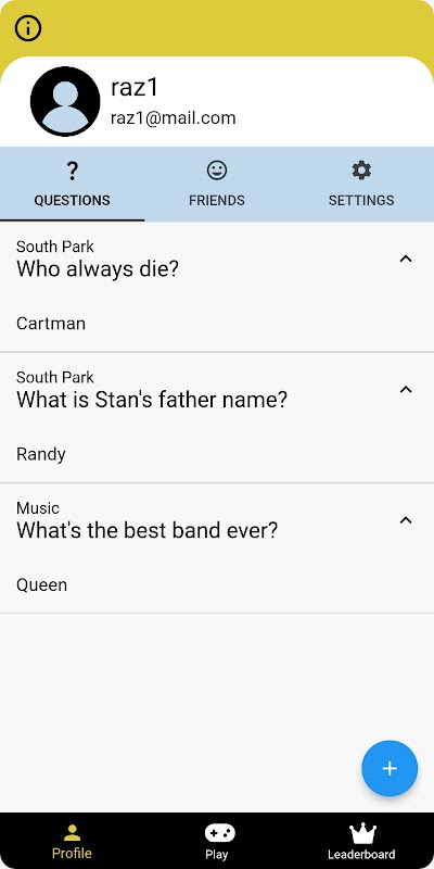 اپنے تمام دوستوں اور کنبہ کے ساتھ کھیلنے کے لئے بہترین سماجی کوئز گیم! اس گیم میں ہر کوئی ایک دوسرے سے مقابلہ کرتا ہے اور نہ صرف صحیح جواب حاصل کرکے بلکہ غلط جواب داخل کرکے بھی: جتنے زیادہ شرکاء آپ کے غلط جواب کا انتخاب کریں گے، آپ کو فی راؤنڈ میں اتنے ہی زیادہ پوائنٹس ملیں گے! آپ صرف اپنے دوستوں کے ساتھ کھیلنے کا انتخاب کر سکتے ہیں، یا عالمی سطح پر کھیلنے کا انتخاب کر سکتے ہیں اور زیادہ سے زیادہ جیت حاصل کر کے سب سے اوپر جانے کی کوشش کر سکتے ہیں۔