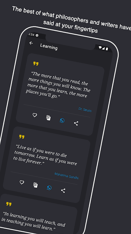 کوٹیشن پروگرام کے ساتھ جو اسکالرز، مصنفین اور مفکرین کے مشہور حوالہ جات اور اقوال دکھاتا ہے۔