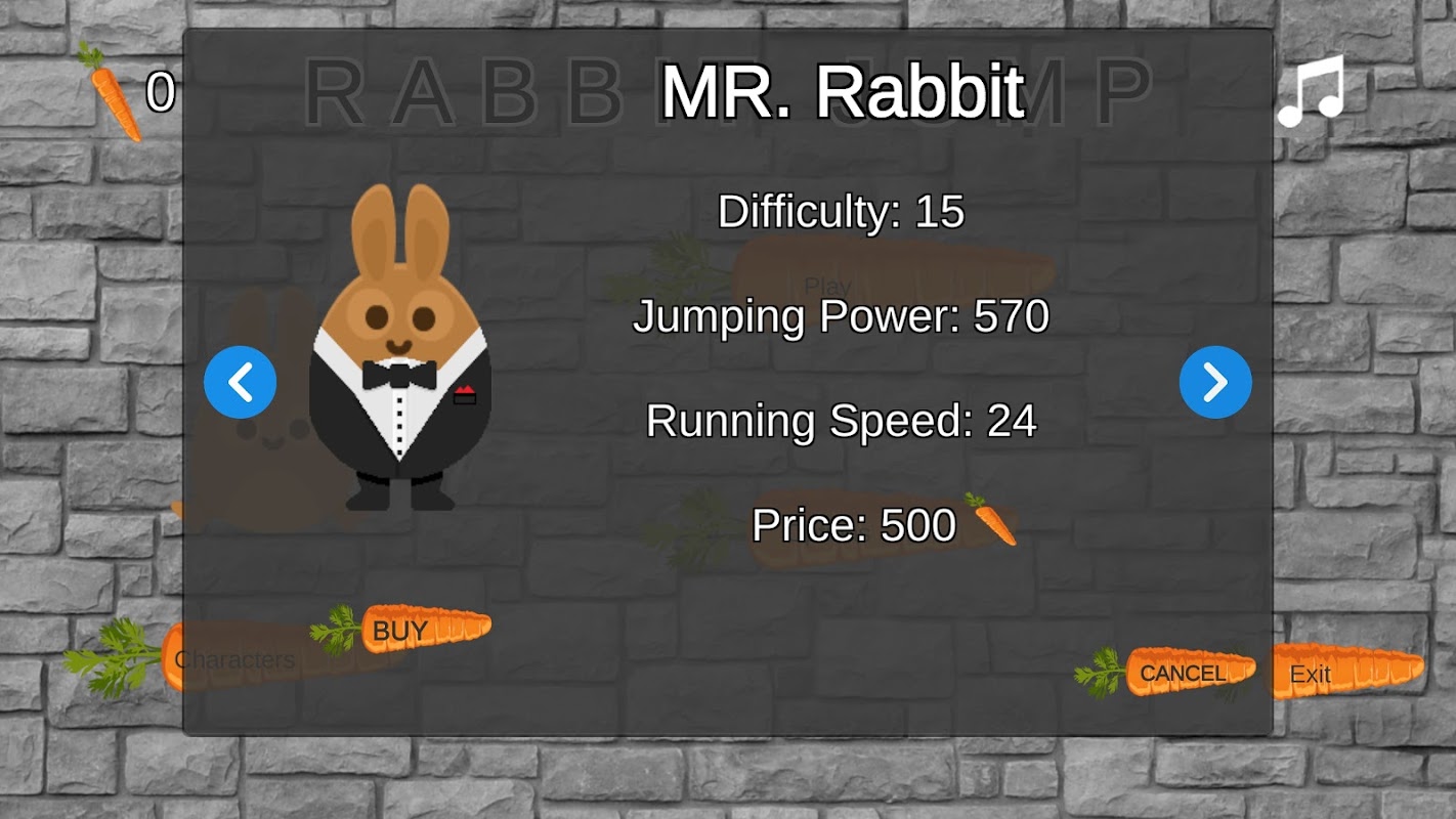 آپ کھیل جاری رکھنے کے لئے اپنے گاجر خرچ کرسکتے ہیں یا خرگوش کے نئے حرف خرید سکتے ہیں!