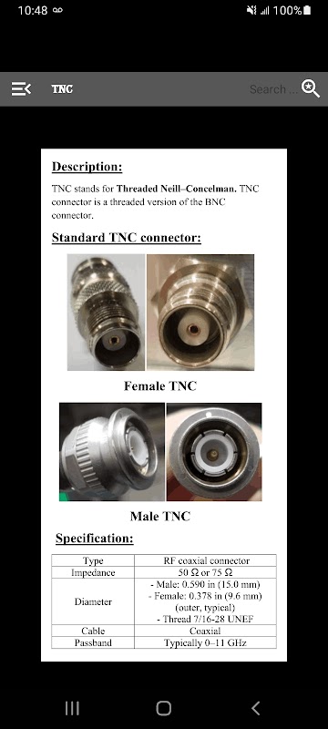 یہ ایپلیکیشن ان لوگوں کی مدد کے لئے بنائی گئی ہے جو RF ، ریڈیو فریکوینسی فیلڈ میں کام کرتے ہیں تاکہ وہ یہ جان سکیں کہ وہ کس قسم کے کنیکٹر استعمال کررہے ہیں۔ ہماری ٹیم کچھ مختصر تعارف ، اور ہر کنیکٹر کی معیاری کام کرنے والی تعدد کی شرط بھی بناتی ہے۔ ہم کارخانہ دار نہیں ہیں ، اور صرف آر ایف کیریئر میں پرجوش ہیں۔