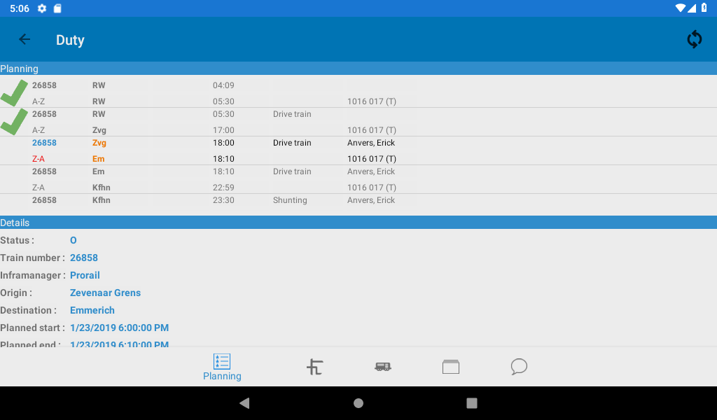 • Detailed information about current duty including planned times and required activities