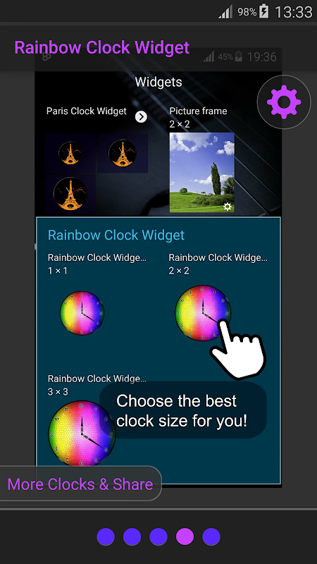 ★ On Widgets screen swipe to find Rainbow Clock Widget