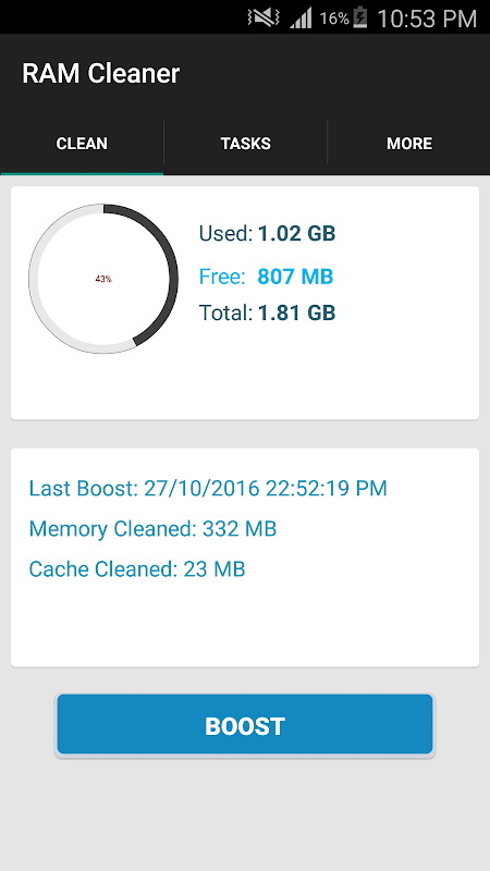 The most trusted and safe RAM optimizer, junk file cleaner, speed booster and battery saver of year 2016.