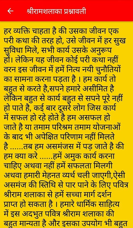 رام شالکا پرشنوالی (श्रीराम शलाका प्रश्नावली) ایپ جو آپ کا مستقبل بتا سکتی ہے۔ رام شالکا کو تلسی داس نے بنایا تھا۔ اس ایپ کو آپ کے تمام سوالات کے جوابات حاصل کرنے کے لیے استعمال کیا جا سکتا ہے جنہیں آپ حل نہیں کر پاتے۔ یہ آپ کا مستقبل ایک نبی یا اوریکل کی طرح بتائے گا اور آپ کو اپنے بیشتر سوالات کے جوابات مل جائیں گے۔