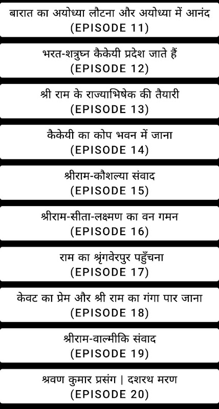 اس ایپ میں رامانند ساگر رامائن کی تمام اقساط شامل ہیں۔