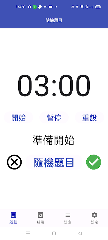 الٹی گنتی شروع کریں، روکیں، دوبارہ ترتیب دیں، صحیح جواب دیں، غلط جواب دیں۔