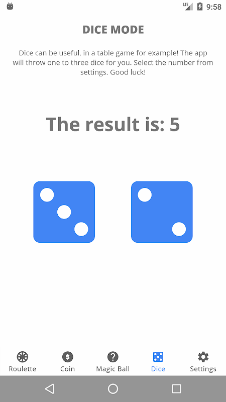 The main purpose of the app is to provide a random choice in different ways.