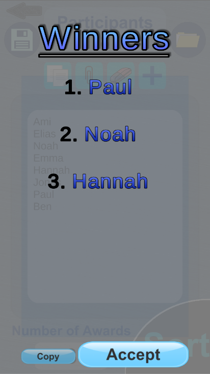 - Random distribution of participant list among prizes list.