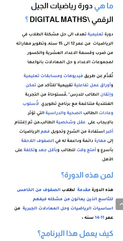 فن لینڈ کے تجربے سے متاثر ہو کر، طالب علم کے صحت مند اور مطالعہ کے انداز اور عادات کے لیے ترقیاتی پروگرام کے ساتھ ہم آہنگی کے ساتھ، "اسباق پر طالب علم کی مہارت کو یقینی بنانے کے لیے" ویڈیوز، تعلیمی مقابلوں، اور انٹرایکٹو اسسمنٹ ورک شیٹس کے ذریعے پیش کیا جاتا ہے جو طالب علم کے ذہن پر مثبت اثر ڈالتی ہے۔ شخصیت، اور پھر زیادہ سے زیادہ وضاحت کریں اور ریاضی کی سمجھ کو ایک مستقل اور معاون ہنر میں تبدیل کریں جو بعد کے درجات میں طالب علم کے لیے تیز ترین اور سب سے زیادہ پر لطف وقت میں اور والدین کے لیے کم سے کم محنت اور قیمت کے ساتھ۔