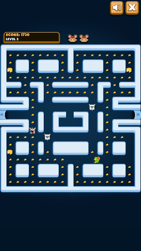 Help the rat to escape from the cats while collecting all the cheese.