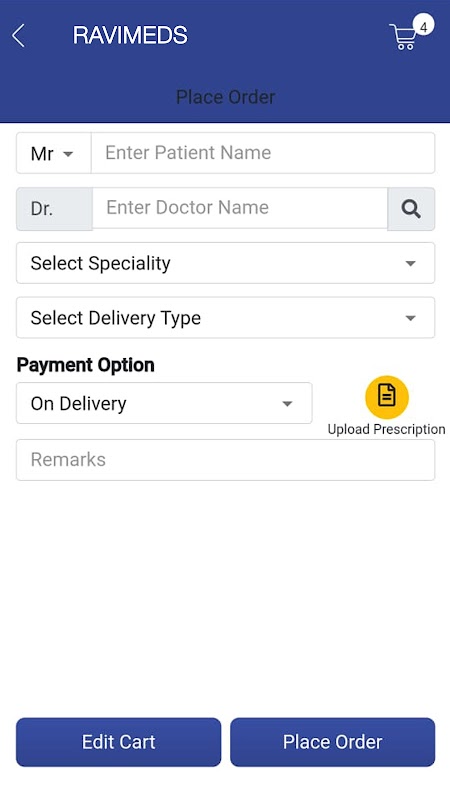our. ہمارے اپ لوڈ نسخے کے اختیار کے ساتھ دوائیوں کا انتخاب چھوڑیں۔ اپنے نسخے کو اسکین / کلک کریں ، تصویر اپ لوڈ کریں اور اپنا آرڈر دیں۔ ایپ باقی کام کرے گی۔