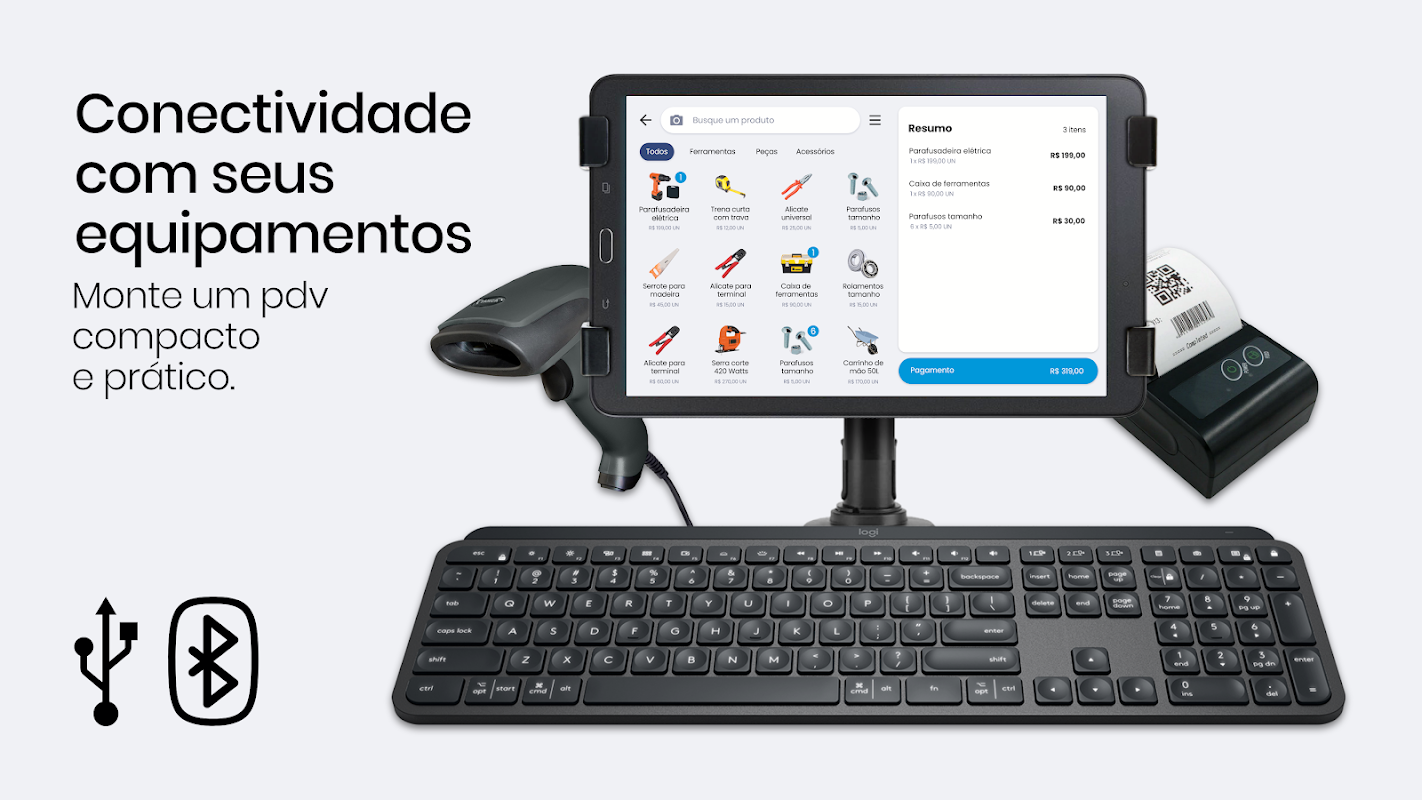 کی بورڈ اور بارکوڈ ریڈر جیسے آلات کو جوڑ کر، آپ ایک کمپیکٹ اور عملی POS بناتے ہیں۔