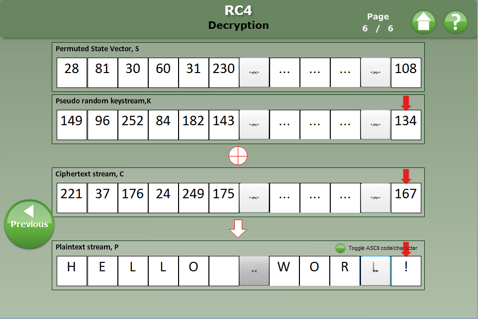 The application demonstrates the working of RC4 algorithm, making use of flash animations. It simulates how values are passed in arrays, and makes a complex process easier to understand.