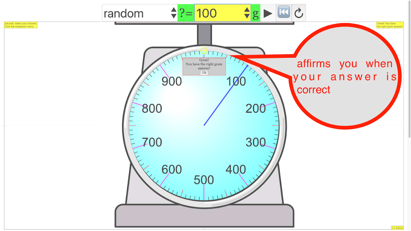 Students typically can tell masses of whole numbers such as 600 g, but to be able to type in 0.60 kg requires some understanding of decimal places.