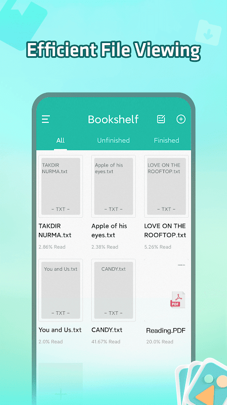 چاہے وہ ناولز، نصابی کتابیں، دستورالعمل، یا فائلوں کی دوسری قسمیں ہوں، جب تک کہ وہ TXT، PDF، یا EPUB فارمیٹ میں ہوں، ہماری ایپ آپ کو پڑھنے کی بہترین خدمات فراہم کر سکتی ہے۔ آپ ان فائلوں کو کسی بھی وقت پڑھنے کے لیے ایپ میں آسانی سے درآمد کر سکتے ہیں۔