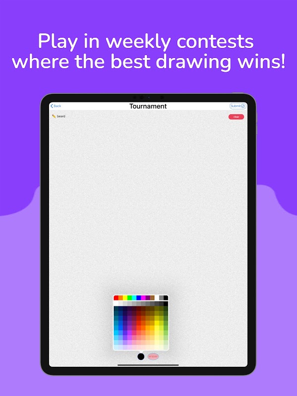 Participate in weekly tournaments where the best drawing is showcased and gains 1000XP and 1000 gold.