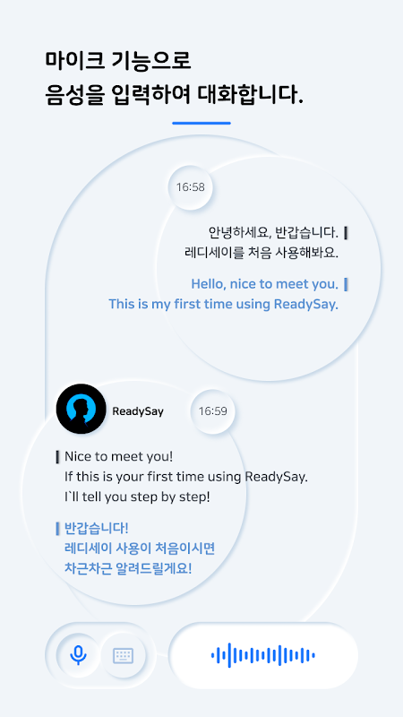 کثیر لسانی بیک وقت تشریح، ترجمہ ReadySay! ملک اور زبان کی رکاوٹوں سے بالاتر ہو کر دنیا بھر کے لوگوں کے ساتھ صوتی چیٹ کا لطف اٹھائیں۔