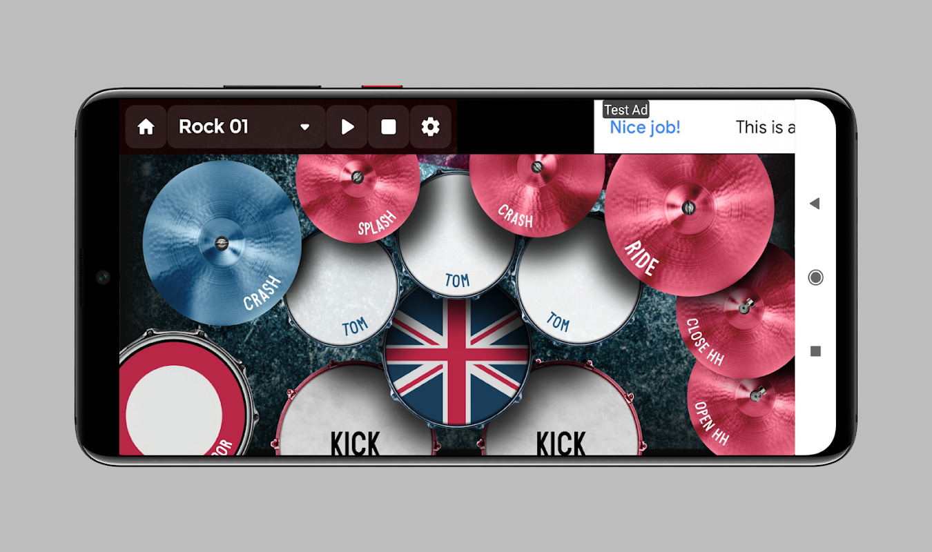 How the app works This app turns your phone/tablet screen into a live drum kit simulation, all you need to do is tap on the drum pads to make it like a drumstick device and feel the vibration effect of your phone.