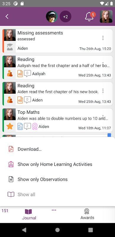 طلباء کے سیکھنے کے شواہد والدین یا خاندان کے ارکان کے ساتھ شیئر کریں تاکہ والدین کو ان کی ترقی پر تازہ ترین رکھیں۔ والدین اور اساتذہ کا مکالمہ کھولنے کے لیے مشاہدات پر والدین کے تبصروں کا جواب دیں۔ والدین اپنے بچے کی سیکھنے اور خصوصی کامیابیوں کے مشاہدات بھی بنا سکتے ہیں جن پر اساتذہ رائے دے سکتے ہیں ، منا سکتے ہیں ، اور یہاں تک کہ جائزے بھی لاگو کر سکتے ہیں تاکہ وہ سکول سے باہر سیکھنے کی پیشرفت کی نگرانی کر سکیں۔