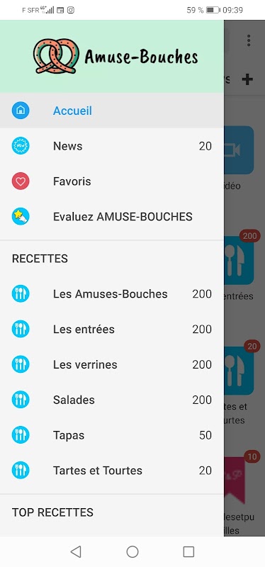 - Accès aux 200 dernières recettes par catégories . Des recettes supplémentaires sont disponibles sur la version mobile et classique https://www.recettes.appyvid.fr