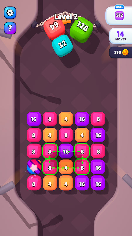 کل تعداد تک پہنچنے کے لیے آپ کو ان نقطوں کو جوڑنا چاہیے جو مستطیل یا مربع کے کونوں کو بناتے ہیں۔ مثال کے طور پر، جب آپ 4 بلاکس کو ان پر نمبر 2 کے ساتھ جوڑتے ہیں، تو آپ کو نمبر 8 ملے گا۔ آپ جتنے زیادہ نمبروں کو جوڑنے کا انتظام کرتے ہیں، آپ کو اتنا ہی زیادہ نمبر ملے گا۔