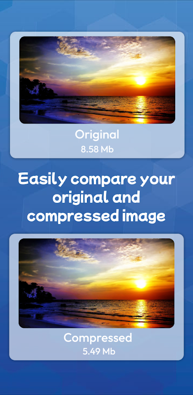 تصویر کا کم سائز کمپریسر ہے جو کسی بھی تصویری ایکسٹینشن کو کمپریس کرنے کے لیے استعمال ہوتا ہے۔ انسٹاگرام، فیس بک، ٹویٹر، پنٹیرسٹ اور بہت کچھ جیسے ہر سوشل میڈیا پلیٹ فارم پر قابل اشتراک۔