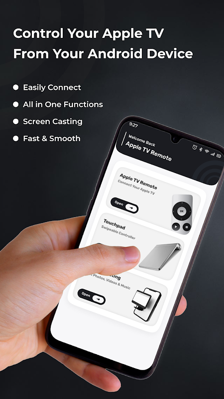 Apple TV ریموٹ ایپلی کیشن آپ کو اپنے Apple TV کو کنٹرول کرنے کی اجازت دیتی ہے۔ اپنے اینڈرائیڈ ڈیوائس کو ایپل ٹی وی کی طرف پوائنٹ کریں اور آپ اسے موبائل ڈیوائس کا استعمال کرکے کنٹرول کر سکیں گے۔ امید ہے کہ آپ ایپل ٹی وی ریموٹ کنٹرول موبائل ایپلیکیشن استعمال کرنے سے لطف اندوز ہوں گے۔