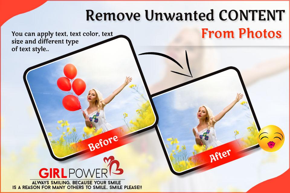Remove Object: Erase Unwanted Content from Photo lets you erase unwanted content in a photo where its people you don't want in the photo or objects that you want to remove the photos.