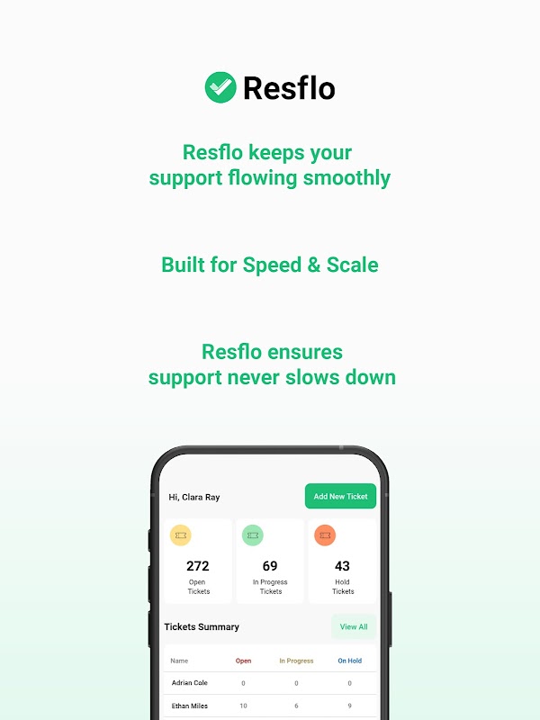 رفتار اور تعاون کے لیے بنایا گیا، Resflo اس بات کو یقینی بناتا ہے کہ ہر درخواست کو وقت پر ہینڈل کیا جائے، ہر قدم پر واضح مواصلت اور جوابدہی کے ساتھ۔